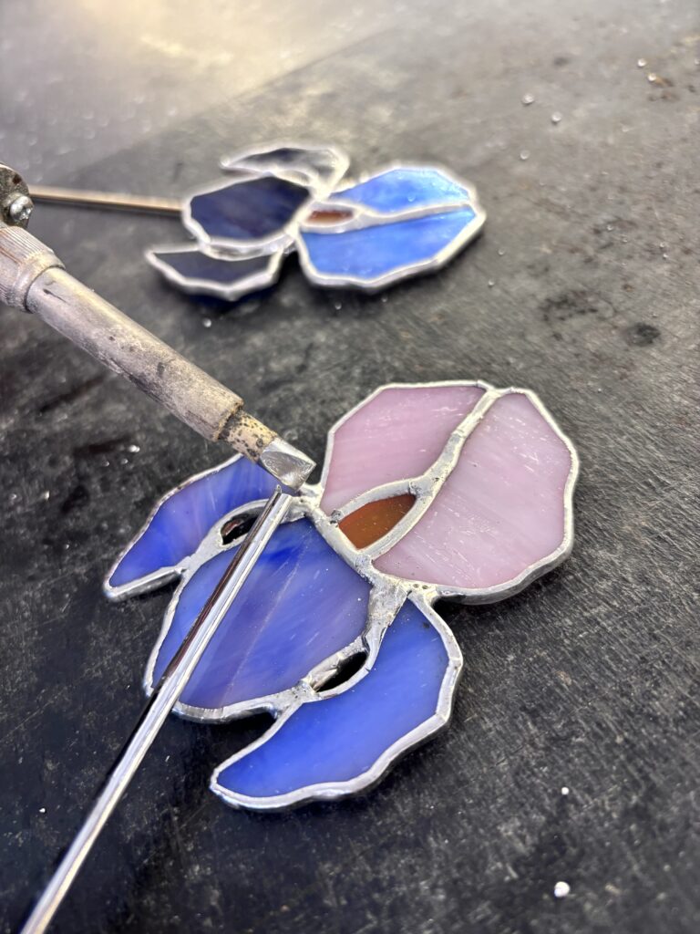 Half a Day with Jo Snowdon (Stained Glass): Create a beautiful single-stem iris using the Copper Foil “Tiffany” Technique. Jo will teach you how to cut glass, grind and foil each piece, and solder them together onto a metal rod. You’ll have a variety of opaque glass colours to choose from to personalize your flower.