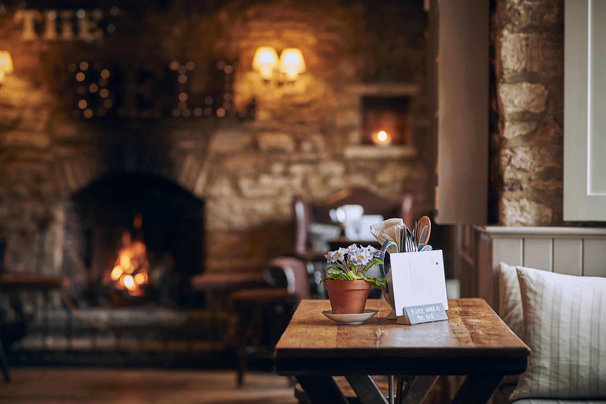 It’s dog-friendly too, so your four-legged friend can dry off by the hearth while you relax in the armchairs.