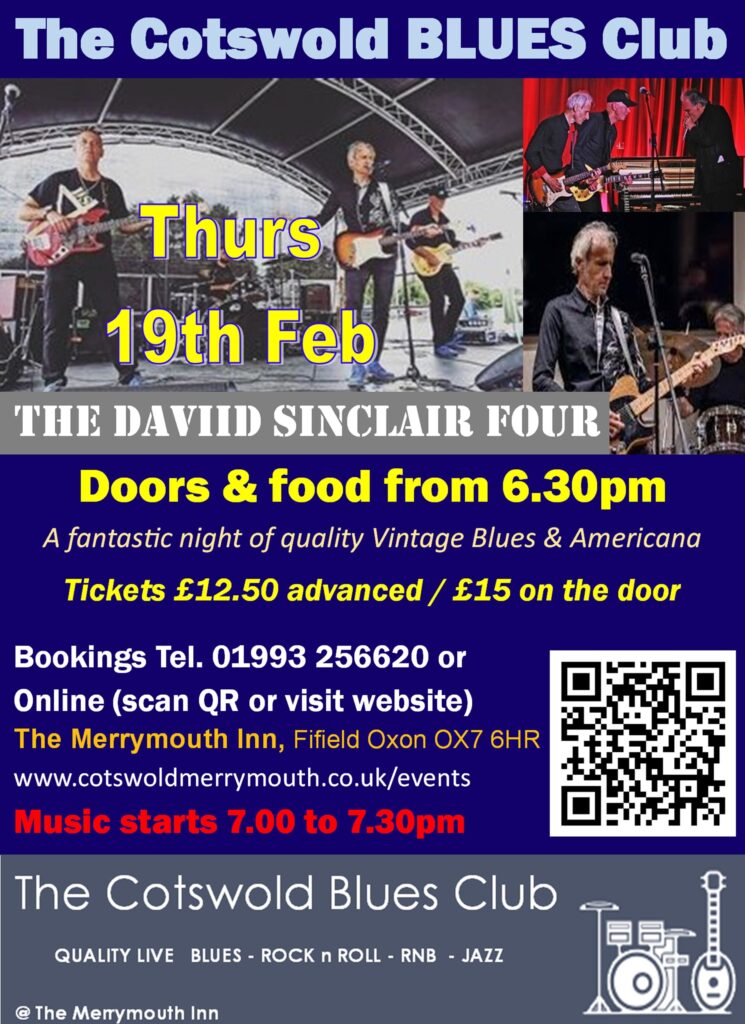 oin The Cotswold Blues Club for a fantastic night of live music featuring The David Sinclair Four. Get ready for an evening filled with quality Vintage Blues and Americana.