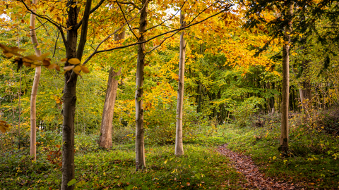 A classic ancient beech woodland tucked just off the beaten path. Come late April, the forest floor bursts into a carpet of bluebells — like someone tipped a paint pot across the undergrowth. The circular trail is quiet, easy-going, and ideal for a midweek wander.